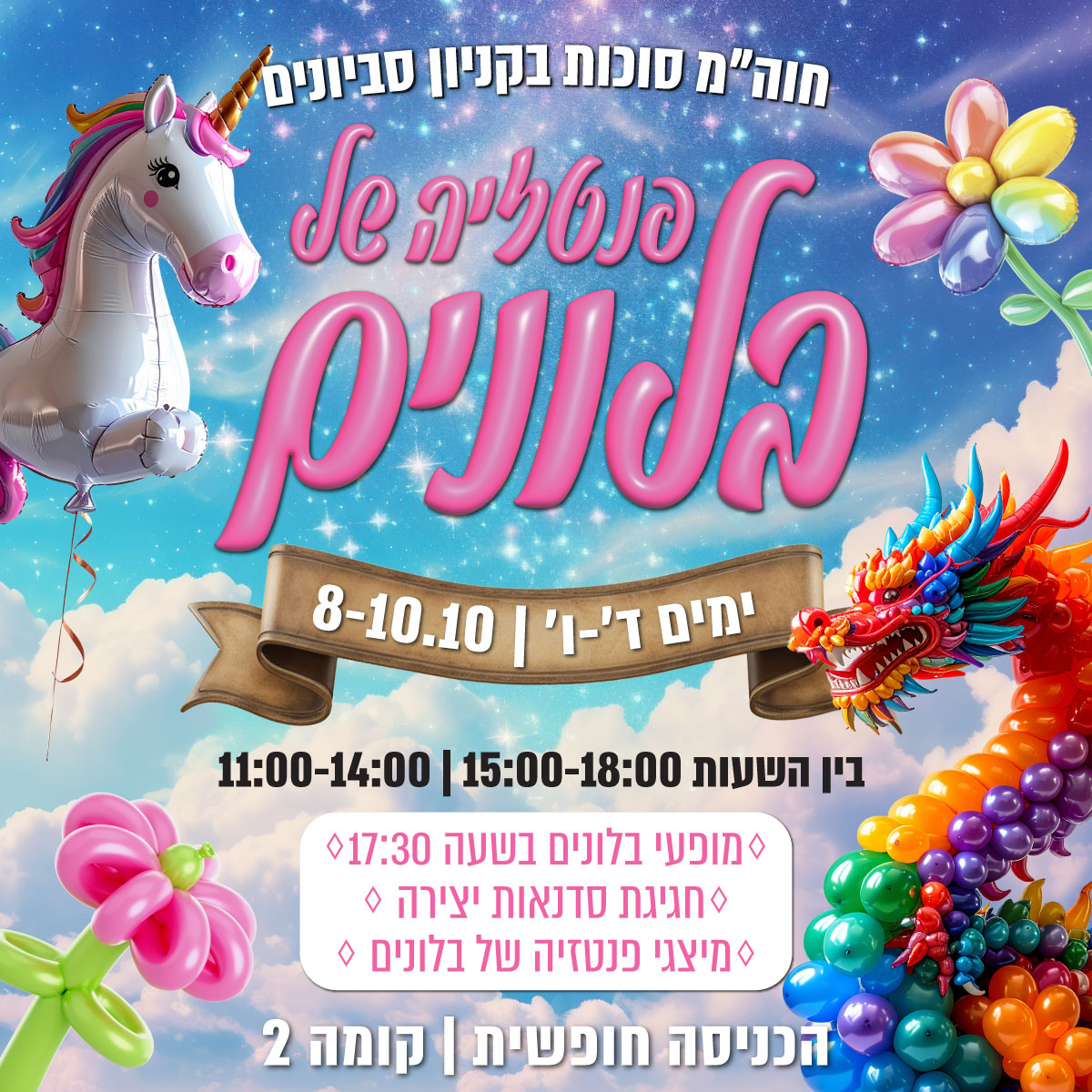 בימים ד' וה' יתקיימו מופעי בלונים מיוחדים ומדליקים